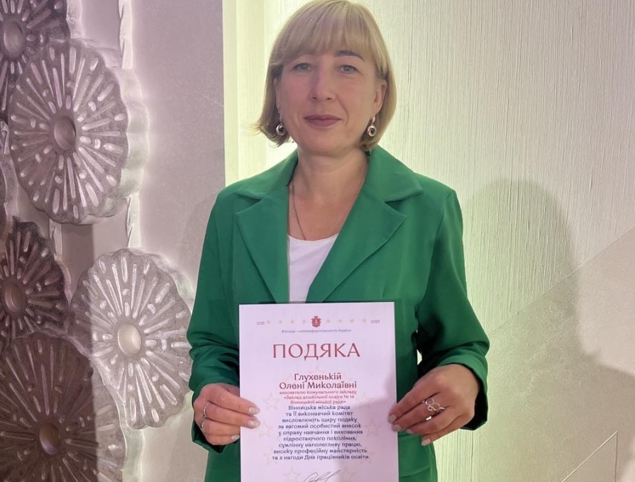 Сьогодні було нагороджено грамотою до Дня працівника освіти вихователя старшої групи №7 Глухеньку Олену Миколаївну.
